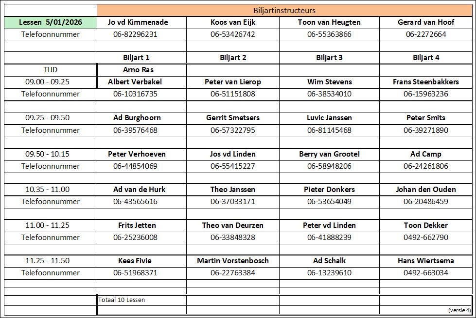 - Biljart 1 : Willem van Leerdam & Frans Rijkers