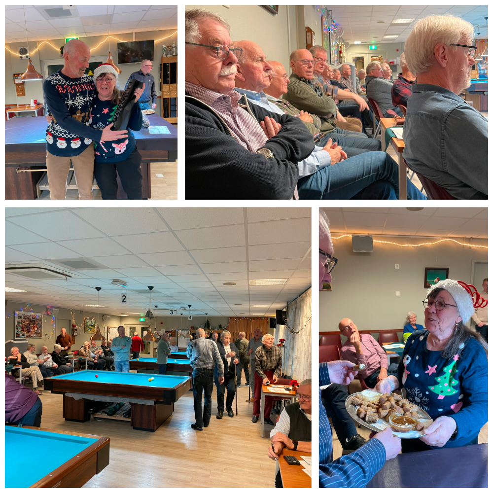 Het kersttoernooi zit er weer op en ik kan jullie informeren dat het een enorm gezellig en mooi evenement is geweest. Het was erg druk de afgelopen week, er waren in totaal 62 deelnemers, wat op zich heel veel is en het geeft ook maar weer eens aan dat het leeft binnen onze vereniging. Op de eerste 4 dagen werd er gespeeld in 4 groepen om te bepalen wie er uiteindelijk bij de 1ste 4 eindigden om de 8ste finale te kunnen spelen.